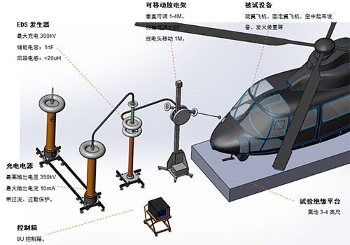 本静电放电发生器是为模拟飞机或发射器系统在天空高速飞行带上非常高的静电后能否安全、正常可靠工作或损坏等专用发生器,它是我们多年来研制的一系列静电放电发生器的基础上研制而成,其放电电压达到300kV,符合MIL-STD-464C、MIL-STD-331D、 GJB1389A、GJB573A、 GJB8848等标准。