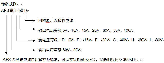 APS xx系列 单极性输出电压:0~60 V,输出电流0~30 A,正弦信号输出频率最高300kHz。