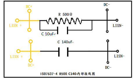 7637-4R500C140产品满足ISO 7637-4中A波、B波中匹配阻抗和回路电容的要求,可单独使用电阻或者电容,也可将电阻电容并联到回路中使用。