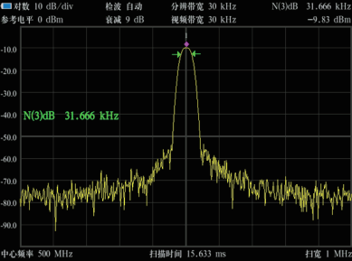 √.可以使用此功能快速测量信号带宽。设定好与峰值功率差值 NdB,实时给出此处的带宽