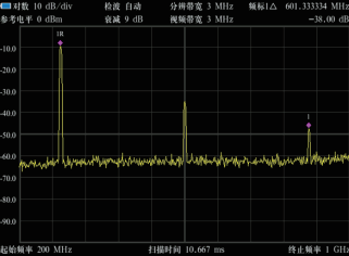 √.同样使用频标的差值方式,测量基波和三阶交调信号。首先将 频标定位到一个基波上,再将频标选择成差值方式,将频标移 到三阶交调信号上,此时显示的△值就是测量结果