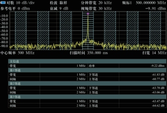 | 邻道功率测量 √.测量主信道功率值、前后邻近两信道功率值及其与主信道的功率差 |