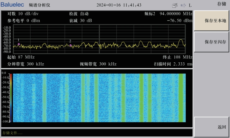 同时显示频谱和瀑布图 √.瀑布图是在频谱图基础上增加时间轴,因此瀑布图更 直观查看信号在一定时间内变化情况 | ![]() |