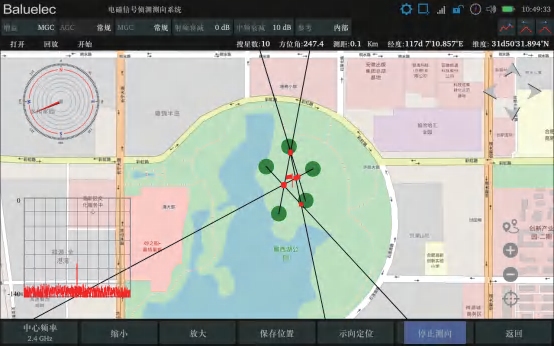 地图测向定位 地图测向定位子系统主要由BD/GPS接收机、电子地图、 电子罗盘以及定向天线四部分组成。内置地市级街道地图,支 持漫游和缩放,根据实时测向结果完成示向、轨迹和交叉定位 功能。测向定位过程数据自动记录,支持离线回放。 |