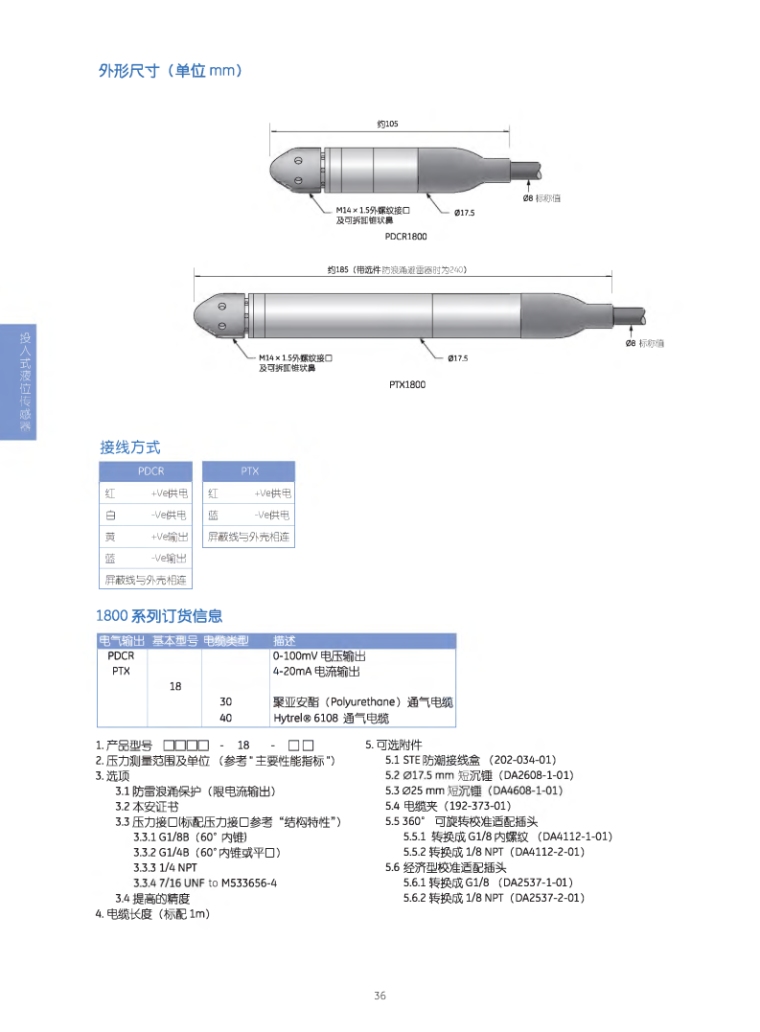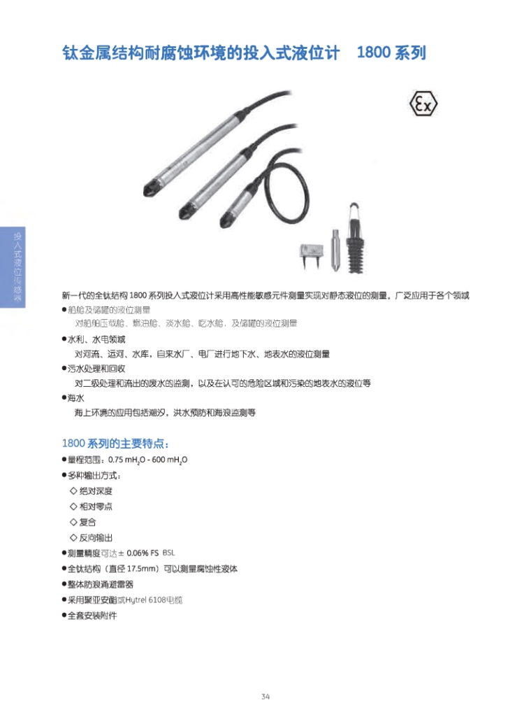 1800型钛金属结构耐腐蚀投入式液位计