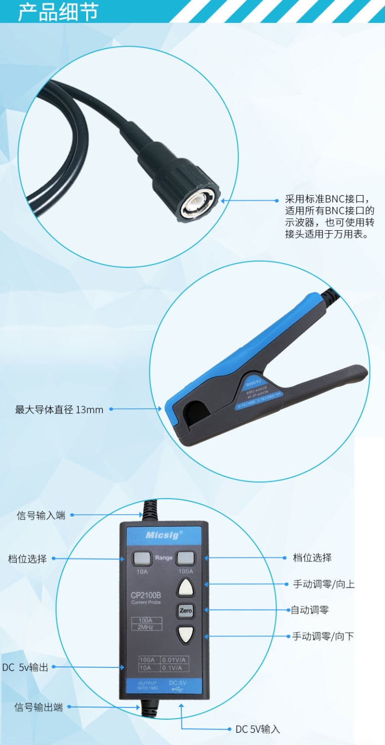 Micsig麦CP2100B(带宽:DC~2.5MHz)交直流电流探头