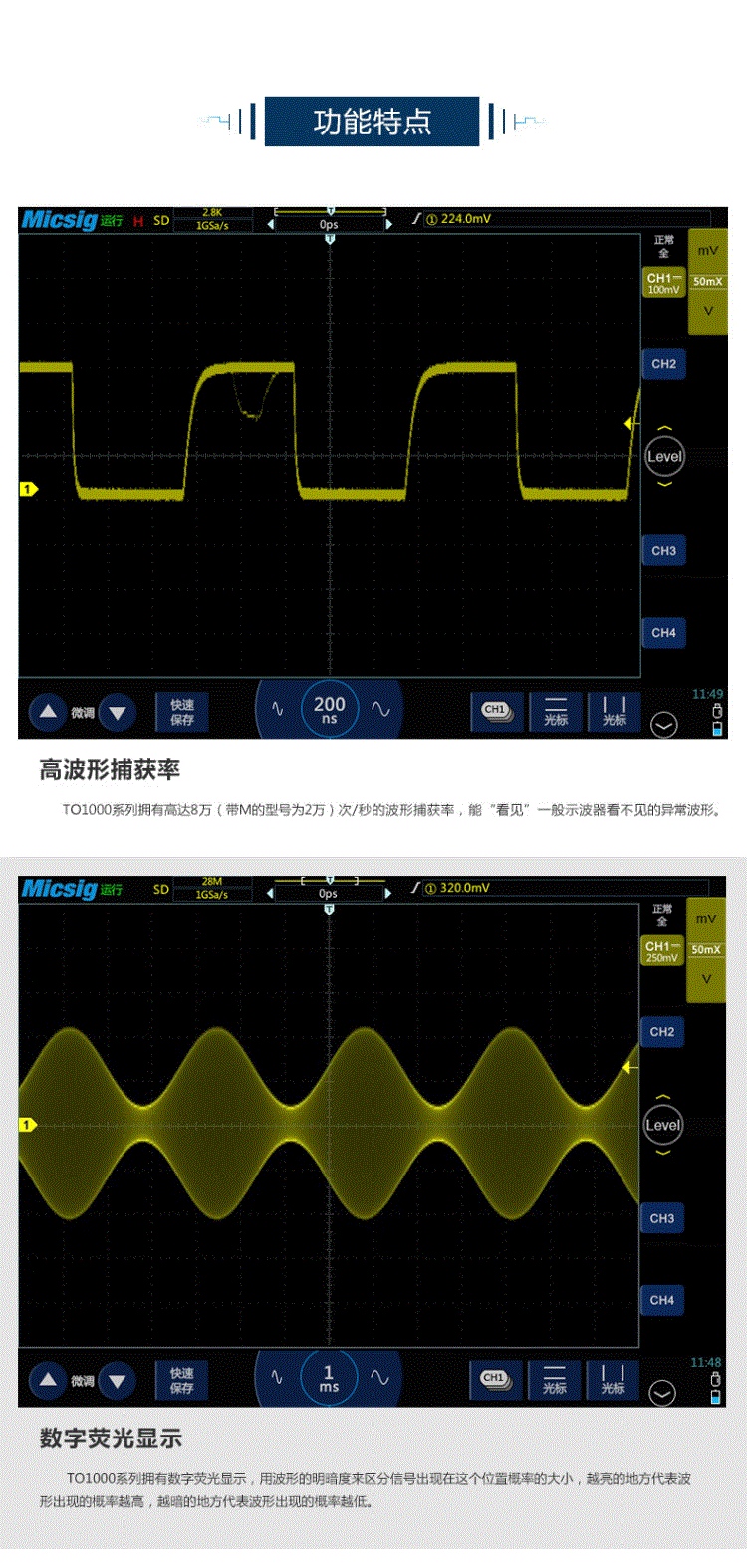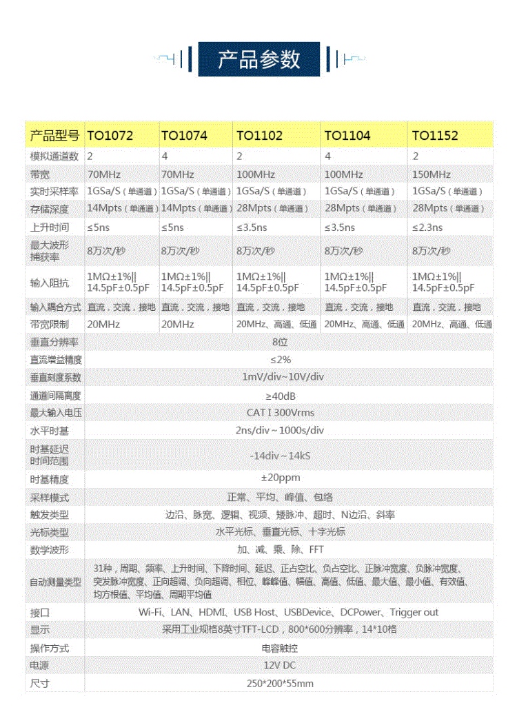 平板示波器TO1104四通道100MHz带宽(不含电池+5种解码)