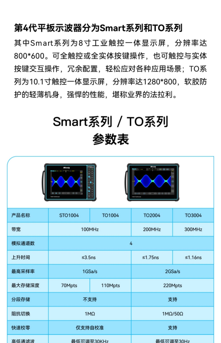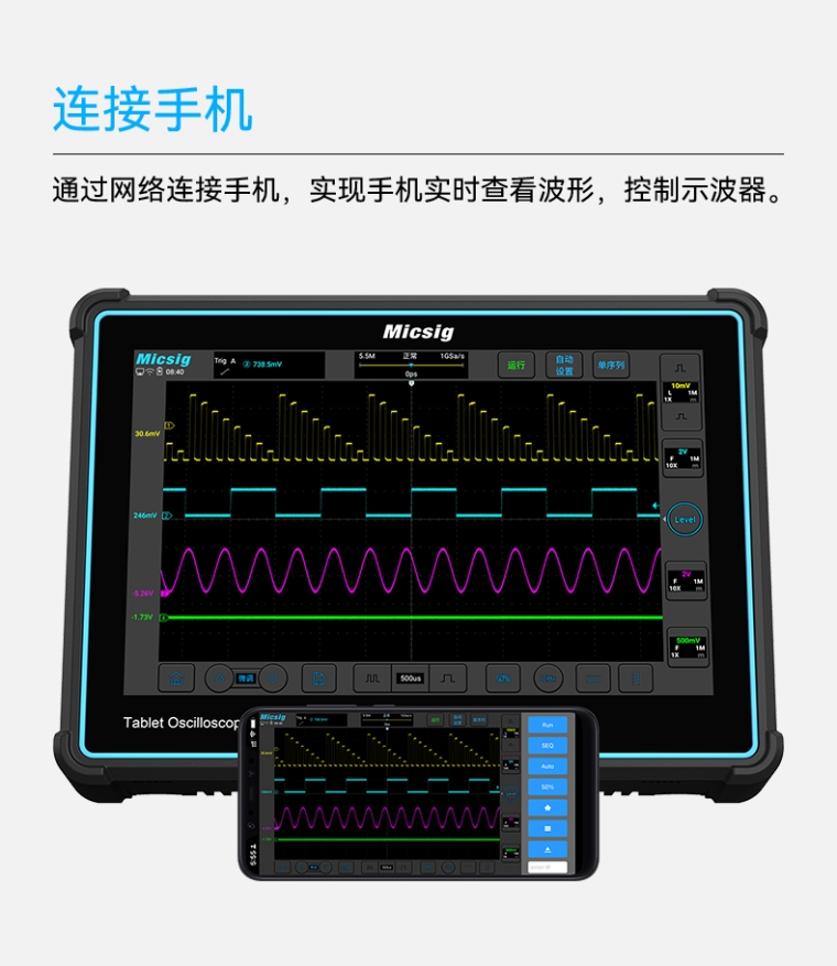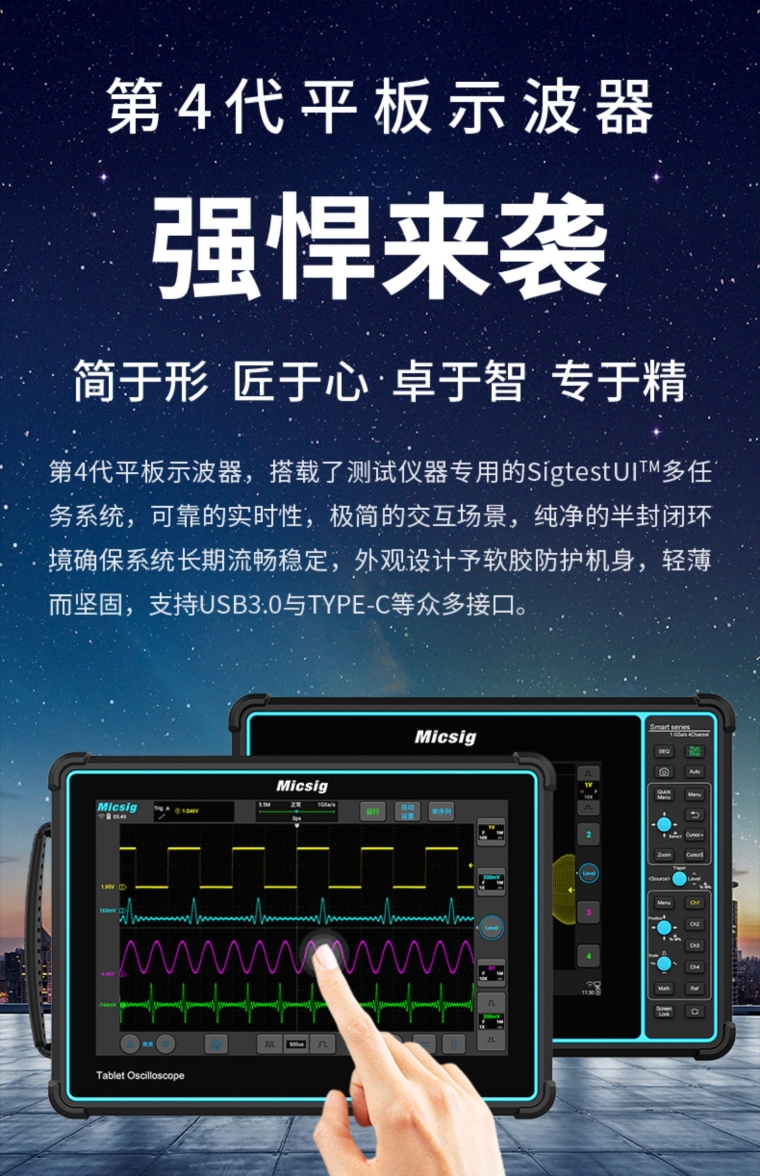 Micsig TO2004平板数字示波器手持便携四通道300M全触控