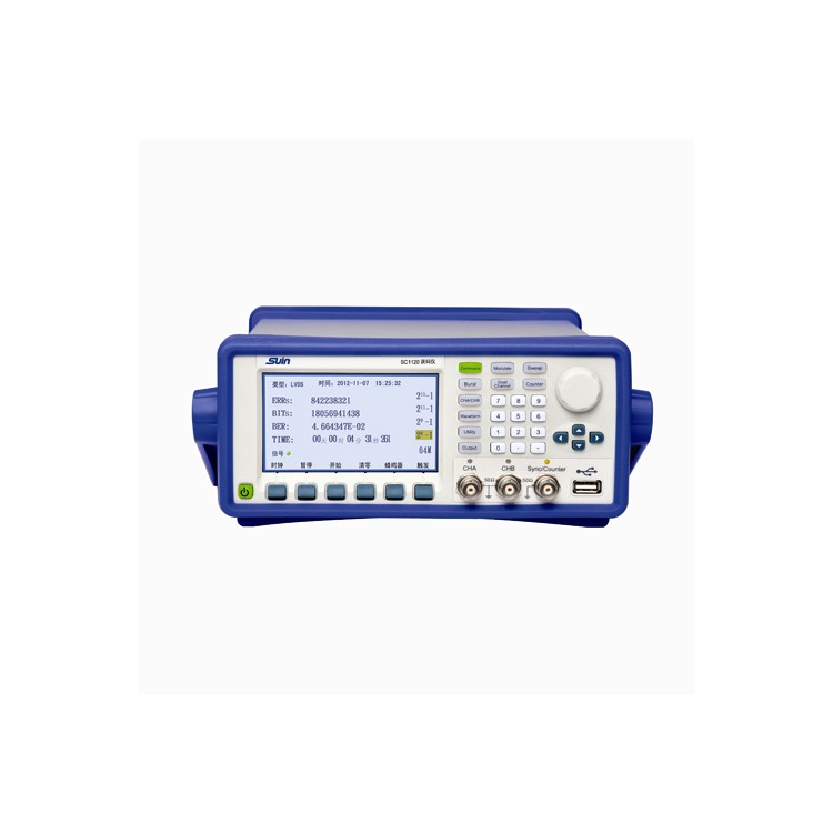 SC1120型误码测试仪为小型便携式结构,它支持1Mb/s、2Mb/s、8Mb/s、16Mb/s、32Mb/s、64Mb/s电信标准速率,支持外部时钟模式的连续数据速率。接口支持RS485、LVDS和BNC接口。显示屏采用480X272像素彩色显示屏。