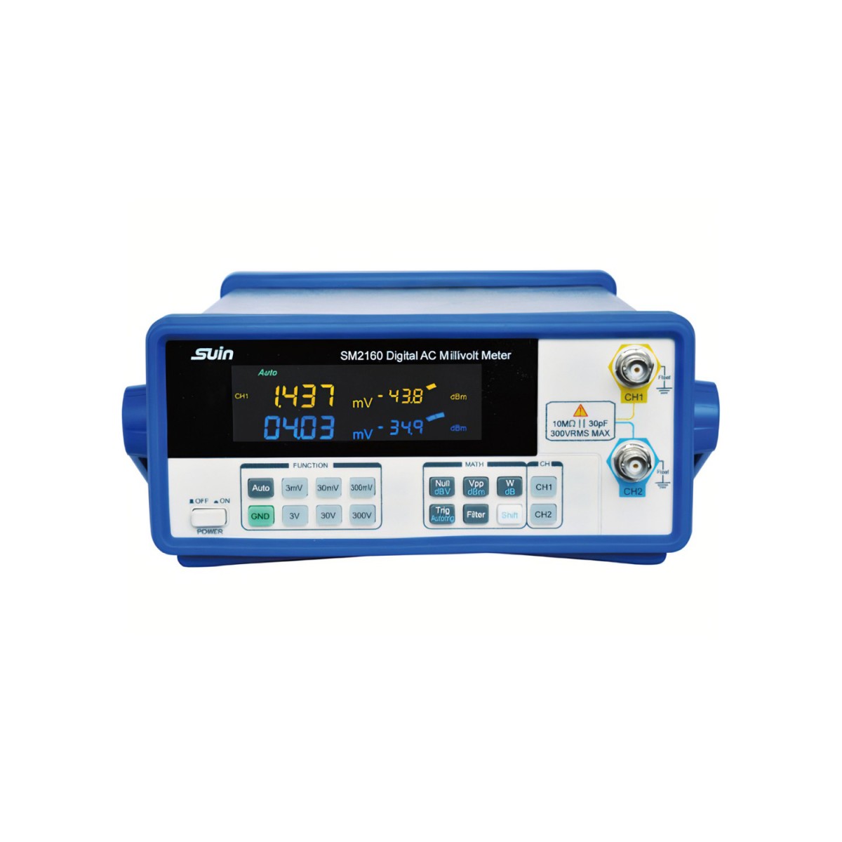 SM2100系列数字交流毫伏表采用了单片机控制和LED显示技术,结合了模拟技术和数字技术。SM2130适用于测量频率5Hz一3MHz,电压50μV一400V的正弦波有效值电压:S12160适用于测量频率5Hz~6Hz,电压50W~300V的正弦波有效值电压。具有量程自动/手动转换功能,3位半或4位半数字显示,小数点自动定位,有两个独立的输入通道,能以有效值、峰峰值、电压电平、功率电平等多种测量单位同时显示测量结果。显示清晰、直观,操作简单、方便。测量地和大地可以悬浮也可以连接,使用安全。可广泛应用于学校、工厂、部队、实验室、科研单位。
