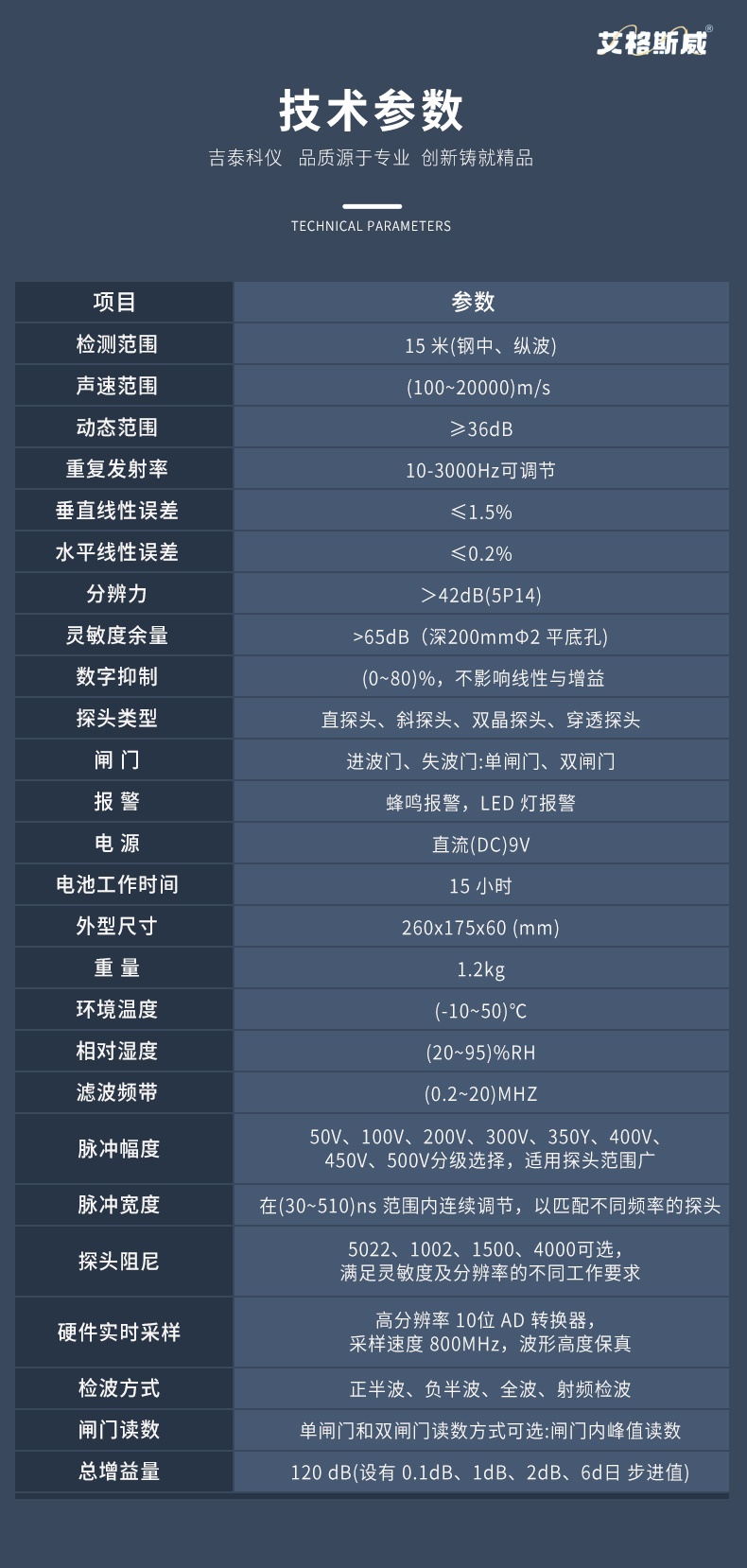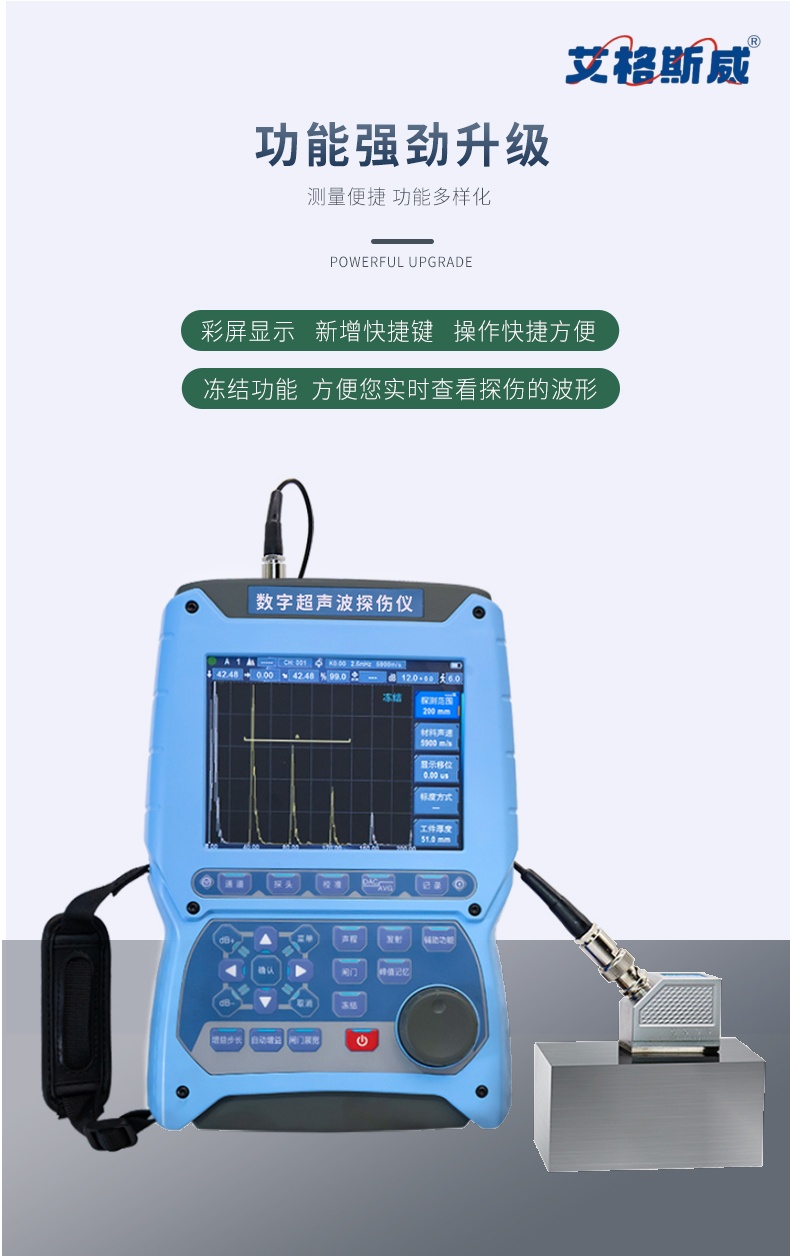 数字超声波探伤仪能够快速便捷、无损伤、精确地进行工件内部多种缺陷如裂纹、焊缝、气孔、砂眼、夹杂折 叠等的检测、定位、评估及诊断,广泛应用于电力、石化、锅炉压力容器、钢结构、航空航天、铁路交通、 汽车、机械等领域。它是无损检测行业的仪器。
