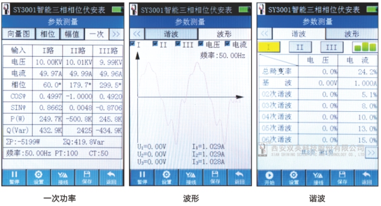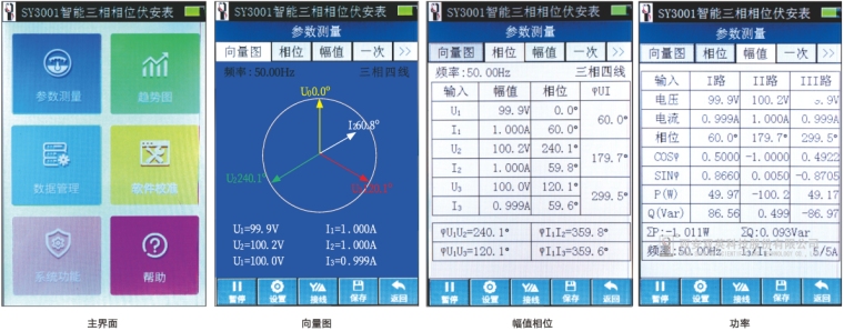 3、可实时显示三相电压、电流波形,相位测量为基波相位,抗干扰能力强;