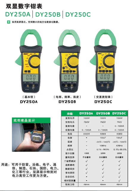 DY250B数字钳形万用表双屏数显钳形表钳表交直流电流测量表