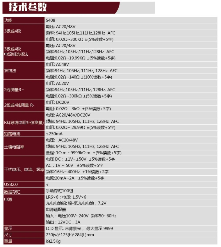 多功能接地电阻测试仪S408