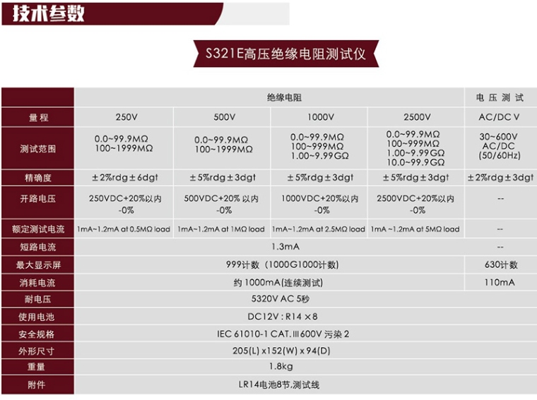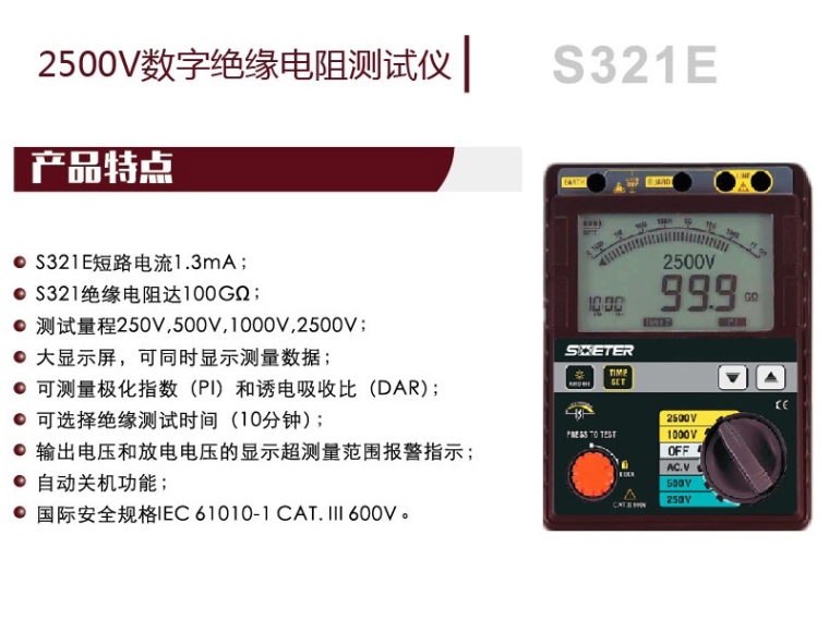 2500V数字绝缘电阻测试仪S321E