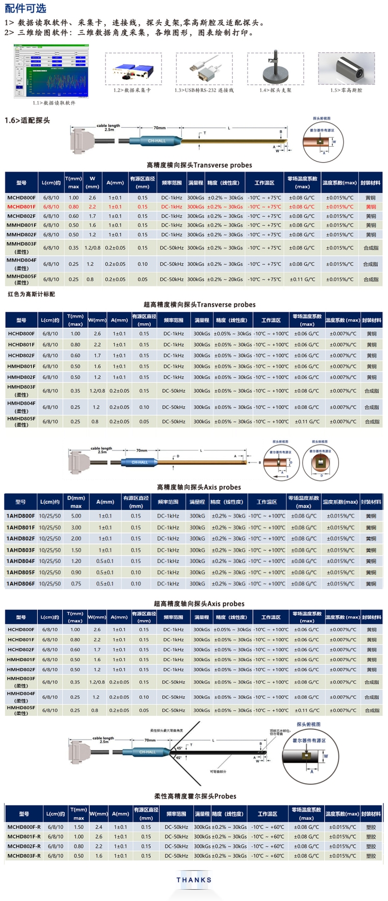 第三代CH-1600型全数字高斯计/特斯拉计适合要求高测试精度,高分辨率的磁场测试应用。测量范围从直流到50KHZ的交流磁场。自动校零,自动量程。保持模式可选极大值,极小值,峰值和谷值。仪表可同时测量和显示6种参数。测量单位可选Gs,mT,A/M或Oe。仪表带RS-232C/USB接口。按照ISO-9001标准设计及生产。明亮的VGA彩色图形显示,全菜单操作,7位读数,极高分辨率1/600000,使您在高磁场测量时能观查到0.001Gs的微弱变化,最大量程100KGS(10T),配属的新一代霍尔探头兼容高低温测试区域并具有极低的温度系数特性和极高的线性度,后端丰富的接口用于接驳高精度数采及工业控制接口,其大容量数据存储及数据阅读可按存储时间查询。高精度高速数字与模拟信号输出。产品主要销往各大研究所,大学和大型企业工厂的研究部门。
