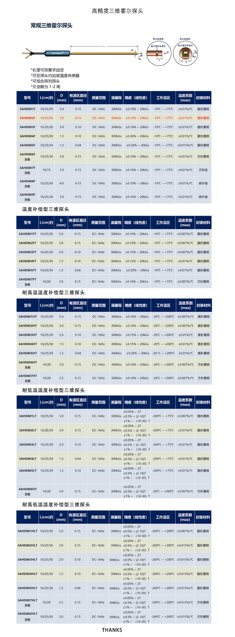 高精度三维霍尔探头