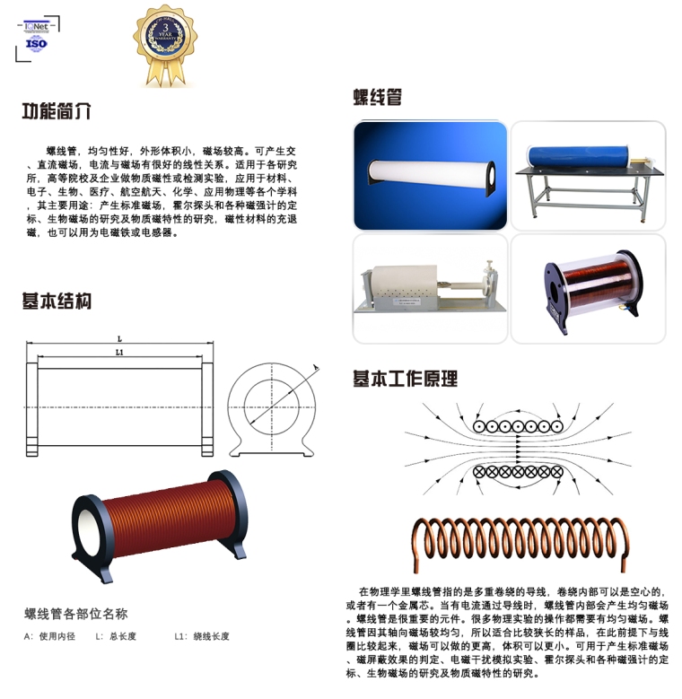 北京翠海专业生产螺线管,具有均匀性好,外形体积小,磁场较高的特点,可产生交、直流磁场,电流与磁场有很好的线性关系。