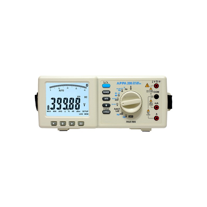 随仪器附送 | 测试导线, 背带, Power Cord, 使用手册, 温度探头, USB数据线, APPA Win万用电表208光盘软件 |