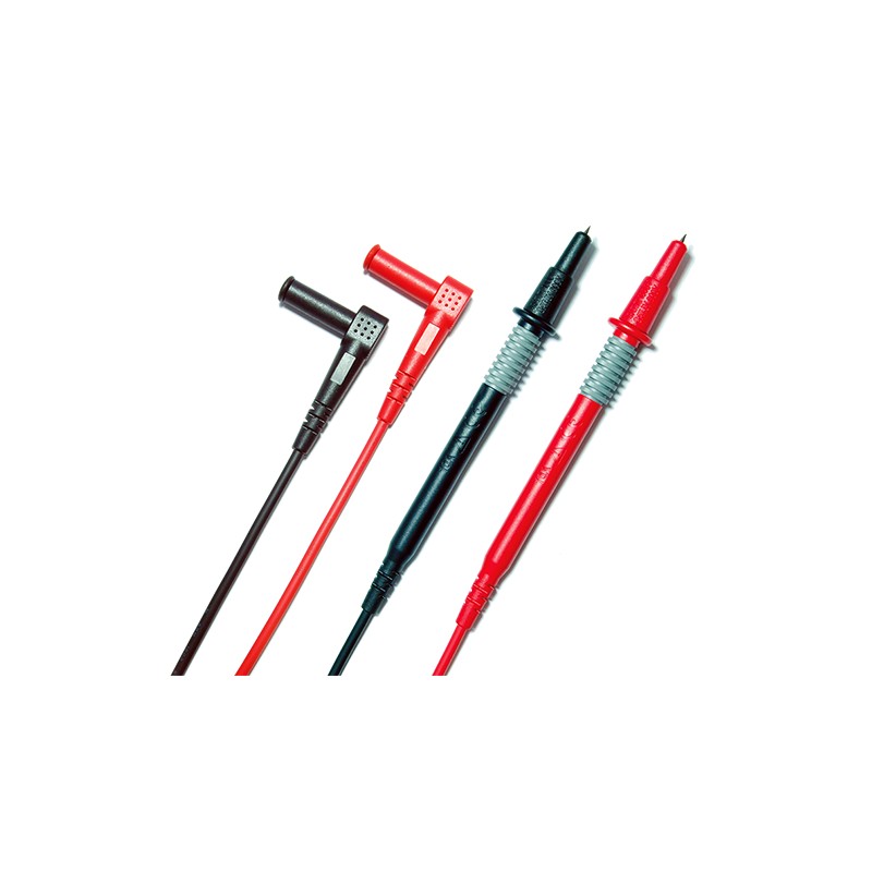 超强 4 毫米香蕉头,使用寿命长。 握把舒适,带安全罩,绝缘直角插头,48"(1.2m),UL 认证引线,1000V,10A,CATIII 600V / CATII 1000V。