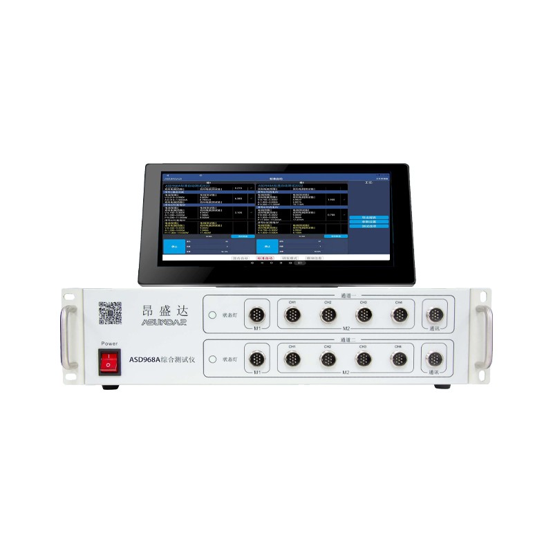 ASD968A综合测试仪由测试仪及触控屏两部分组成,主要用于移动电源、适配器等外接电源 PCBA和成品的功能检测、参数测试及性能评估。测试仪内部集成两个独立的模拟电池模块对应2个测试接口,两个独立的双向电源模块对应8个测试接口,2个通讯插座。模拟电池可模拟充电电池的充放电现象,双向电源兼具电源和负载功能且支持 QC、PD、华为及三星快充协议。单台设备可完成PCBA或成品的绝大部分功能测试,测试移动电源无需外接锂离子电池,测试快充无需诱骗器、电源、负载等各类设备。支持协议自动侦测,支持编程自动测试。支持数据存储、导入及导出,可将测试结果以文档形式导出至USB存储设备。