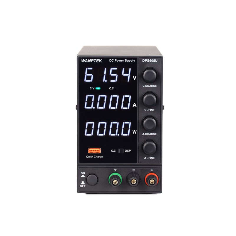 DPS605U是一款三窗口四位显示高精度开关型直流稳压电源,可同时显示电压、电流、功率。产品广泛用于手机维修、电脑维修、学校和生产线的使用,其输出电压和输出电流均可在0和标称值之间连续可调。电源的稳定度和纹波系数都非常好,具有USB快充功能和**的短路保护电路。其体积小、设计美观、操作便捷、可以满负荷长时间工作,深受广大用户喜爱。