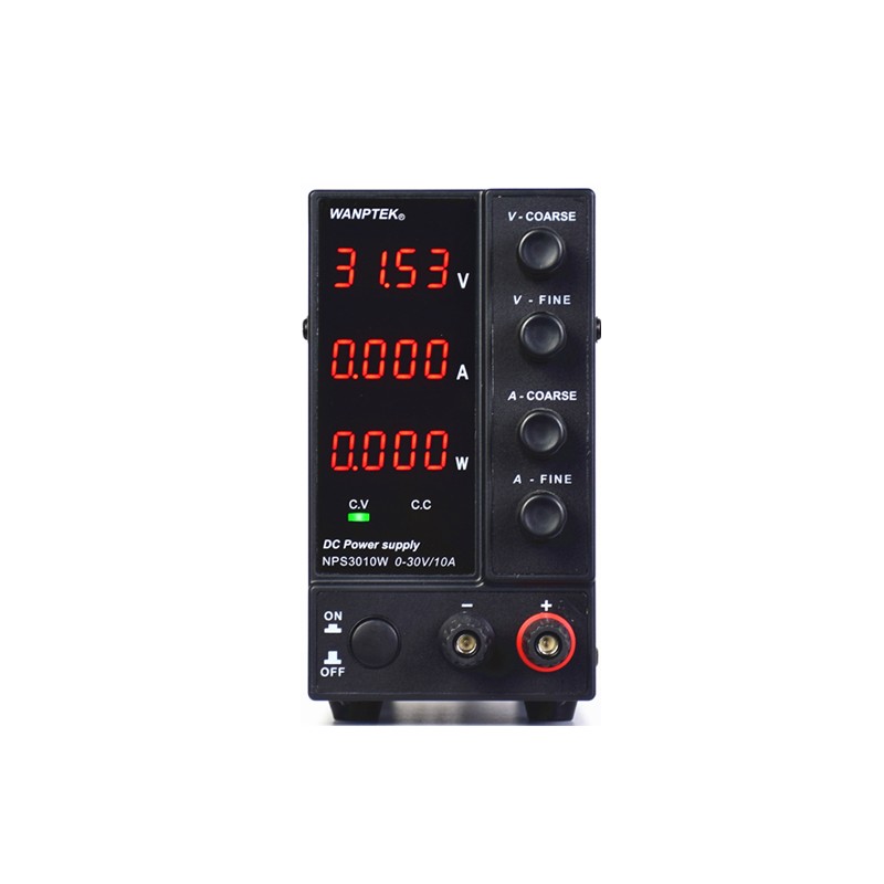 固测电子新推出的NPS-W系列产品,含有4款型号,分别是NPS306W,NPS3010W,NPS605W,NPS1203W,机身颜色有黑色和灰白色选择。该机型是属于迷你型开关式直流电源供应器,产品改善了传统线性式电源供应器体积大、重量重、和效率差的缺点。输出电压与电流,可分别由可变电阻器来控制调整,所以在电压、电流的调整上提供了更加的便利性与精准性。面板上同时提供了电压,电流,功率三窗口数码管高精度显示,使用户可以直观的看到机器当前的使用状态和各项参数。