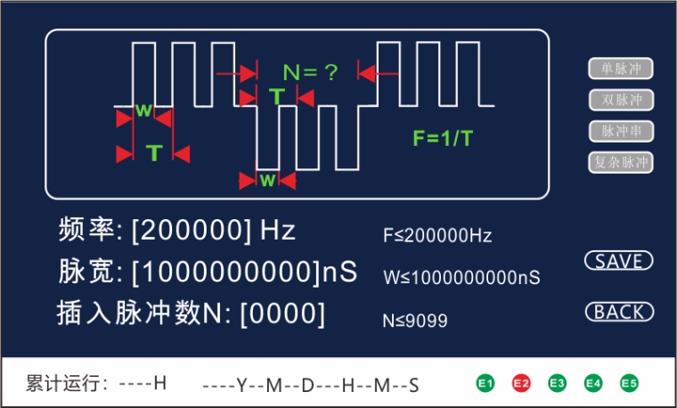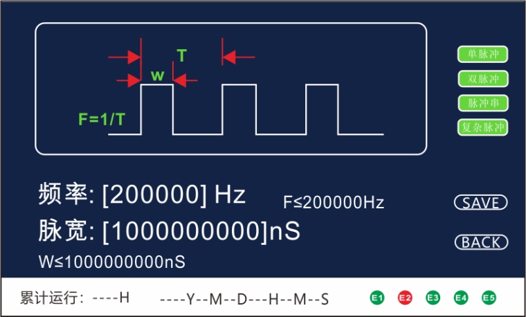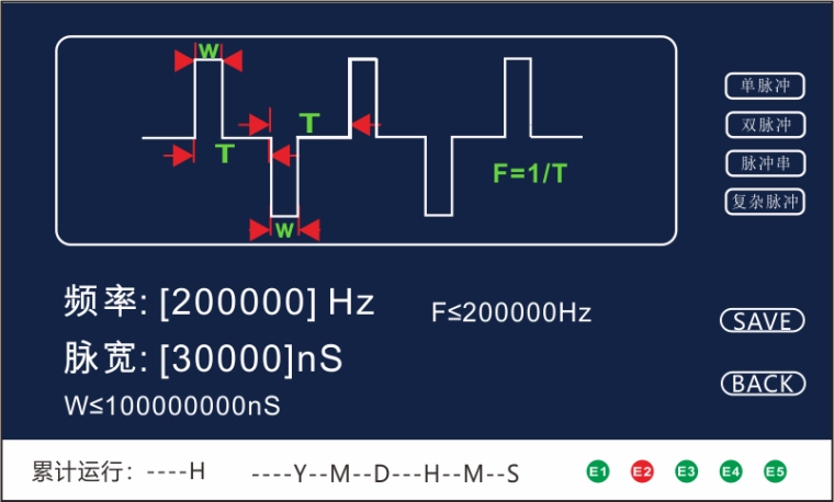输出频率 | 50Hz~800Hz(可根据客户要求最大100000Hz),分辨率1Hz |