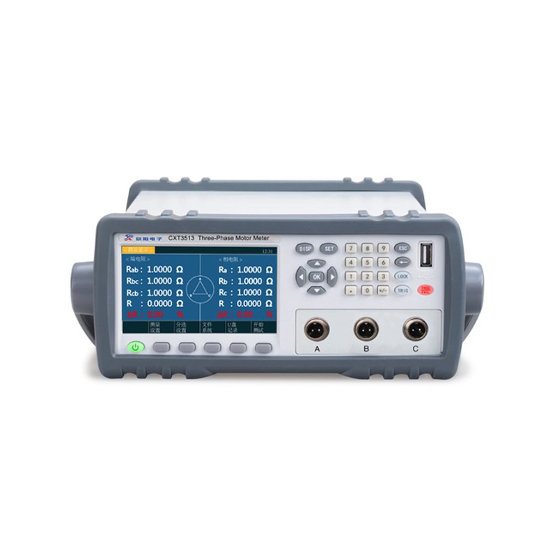CXT3513是一款用于测量三相电机电阻不平衡度、极差的高精度测试仪. 其0.05%的基本精度、10uΩ的最小分辨率可以满足大部分三相电机的电阻测试需求.本仪器还可同时显示三相电机的端电阻与相电阻,方便用户对电机的不平衡度/极差等参数进行评估测试与分选.