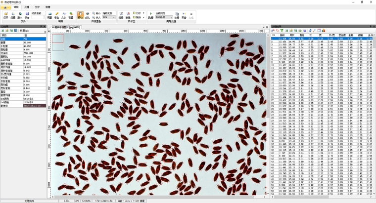 4、可根据实际需求自行创制一键自动分析向导,适用于水稻、小麦、玉米、豆类、油菜籽、瓜子、蔬菜籽等各类农作物的自动精确考种、各类粮库的虫口自动计数,以及出苗数、均匀度分析,显示和输出计数结果。