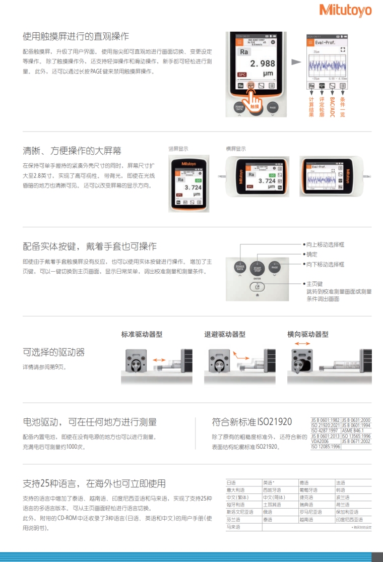 1、小型表面粗糙度测量仪SJ-200系列的升级版;保持出色的可携带性和现场易用性。