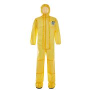 型号:CT1S414 雷克兰CT1S414带帽带脚套连体衣;适用于欧标3类、4类应用中对无机强酸强碱化学品提供有效防护。ChemMAX®1专业防化面料;ChemMAX®1面料为高密度聚乙烯(HDPE)覆膜于聚丙烯所形成的复合面料,可提供对常见无机化学品和某些有机 |