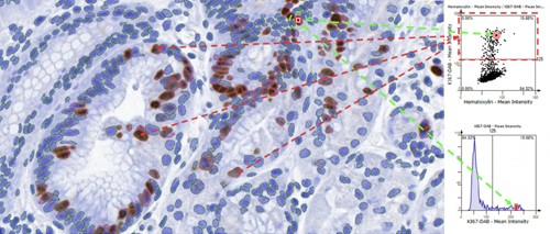 TissueFAXS系统将流式散点图分析技术与图像原位信息相结合,既获得了精确单细胞级别的定量数据,更深度结合组织原位的位置信息,可进行组织结构定量、组织区域筛分定量、目标蛋白或靶细胞在组织中的分布情况等定量分析,不仅提供了更全面的分析数据,也为未来的研究提出了新的解决思路和研究方向。