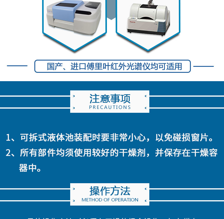 此款固定液体池配套光程有:0.1mm、0.2mm、0.3mm、0.5mmm。适用