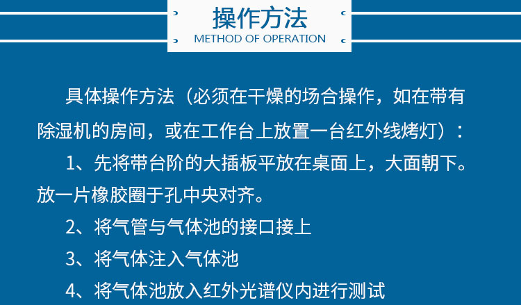 使用时只需要打开气压阀,把样品注入并充满气体池后,关闭气压阀,放在红外样品室中进行检测即可。