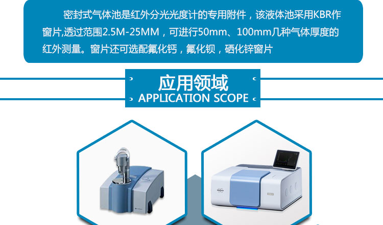 光程为100或50mm,如果有特殊需要,也可以配备CaF2,NaCl,ZnSe等窗片材料。