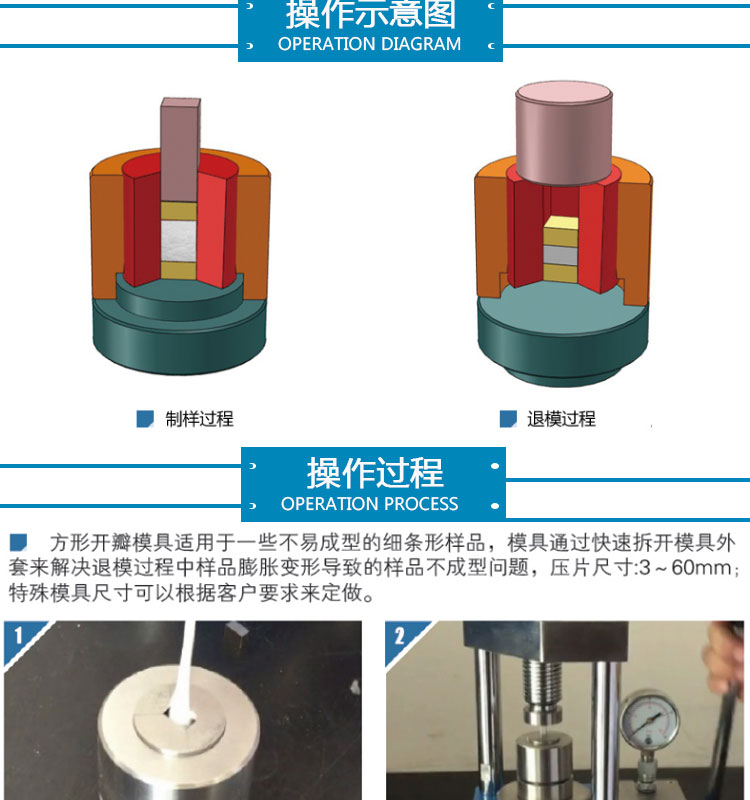 方形 / 长方形开瓣模具采用进口高速工具钢,表面光滑度高,硬度强。适用于材料科学