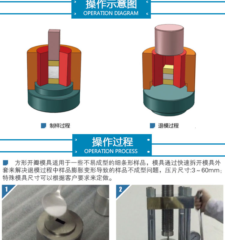 方形 / 长方形开瓣模具采用进口高速工具钢,表面光滑度高,硬度强。适用于材料科学