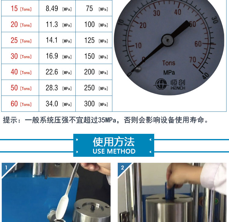 压力范围 0-60T(35Mpa)