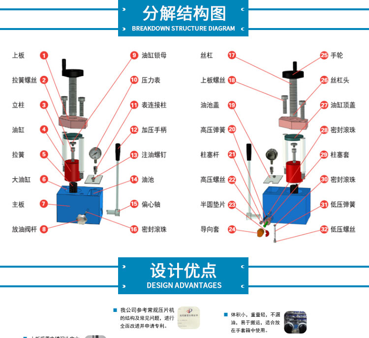 整体结构 手动液压制式,锻造工艺,一体式结构(搭载68号耐磨液压油)