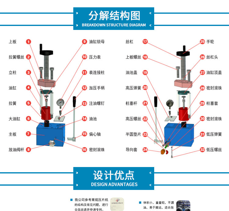 整体结构 手动液压制式,锻造工艺,一体式结构(搭载68号耐磨液压油)