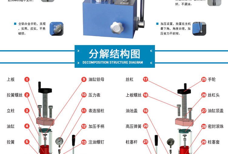 整体结构 手动液压制式,锻造工艺,一体式结构