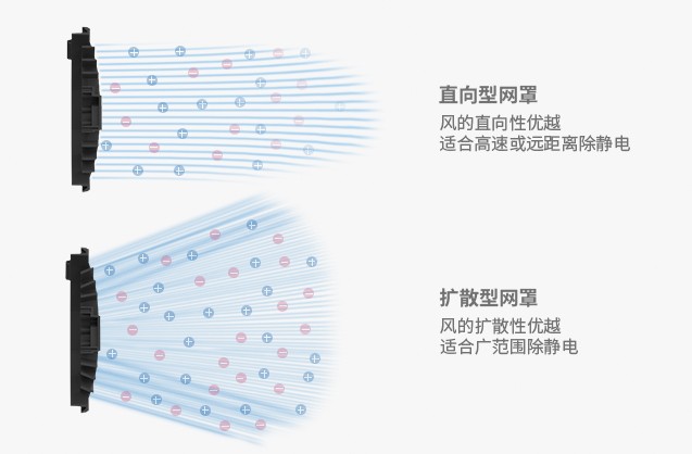 标配双网罩设计,轻松应对不同场景需求 聚焦型网罩——专为长距离除静电优化,精准消除远距离静电,适合精密仪器、自动化产线; 扩散型网罩——实现大范围静电消除,覆盖更广。 快速更换设计,无需工具即可切换,提升静电防护效率,适配工业除尘、电子制造等多种场景。 |