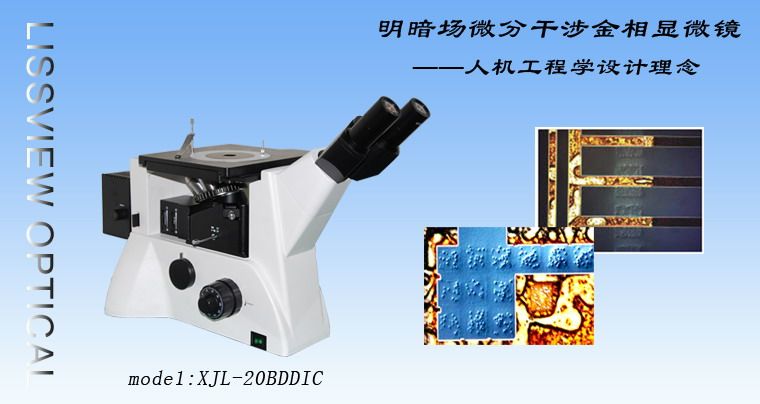 XJL-20BDDIC型倒置金相显微镜采用优良的无限远光学系统,可提供**的光学性能。紧凑稳定的高刚性主体,充分体现了显微操作的防振要求。模块化的功能设计,可以方便升级系统,实现偏振观察、暗视场观察、明视场微分干涉观察等功能。照明系统充分考虑散热性与安全性,可快速更换灯泡。符合人机工程学要求的理想设计,使操作更方便舒适,空间更广阔。可用于半导体硅晶片、LCD基板、固体粉未及其它工业试样的显微观察,是材料学、精密电子工程学等领域研究的理想仪器。