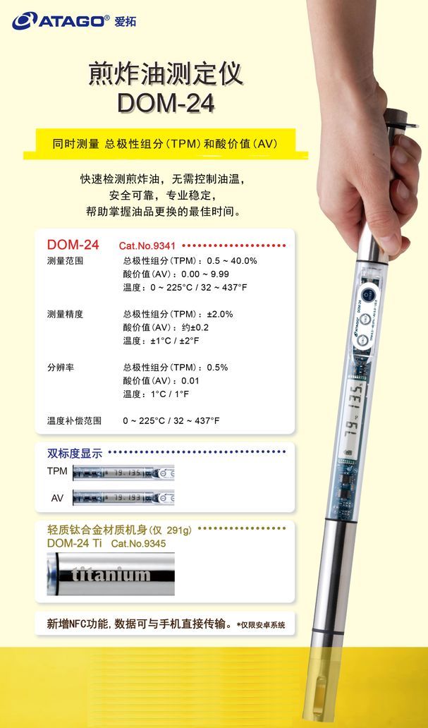 ATAGO(爱拓)煎炸油测定仪 DOM-24 系列,有效帮助掌握油品更换的**时间。
