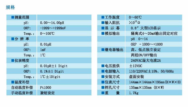 ■ 具手动校正;手动/自动选择温度补偿等功能