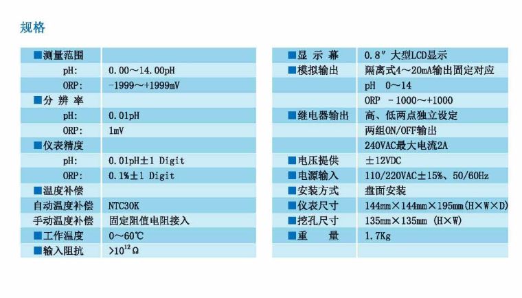 ■ 具手动校正;手动/自动选择温度补偿等功能