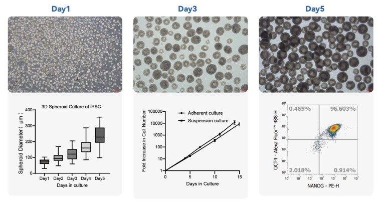 华辰生物StarPluri™ iPSC培养基搭配多能干细胞悬浮培养添加剂可用于 iPSC 3D大规模扩增,且不影响细胞多能性维持