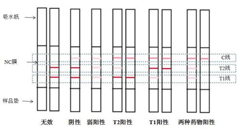 1. 阴性(未检出):T 线颜色≥C 线颜色。