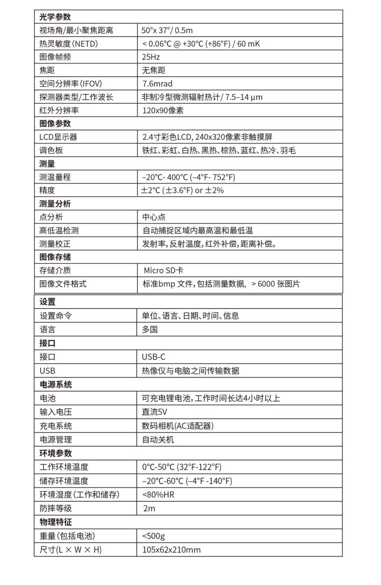 2、测温量程:–20℃-400℃(–4℉- 752℉)